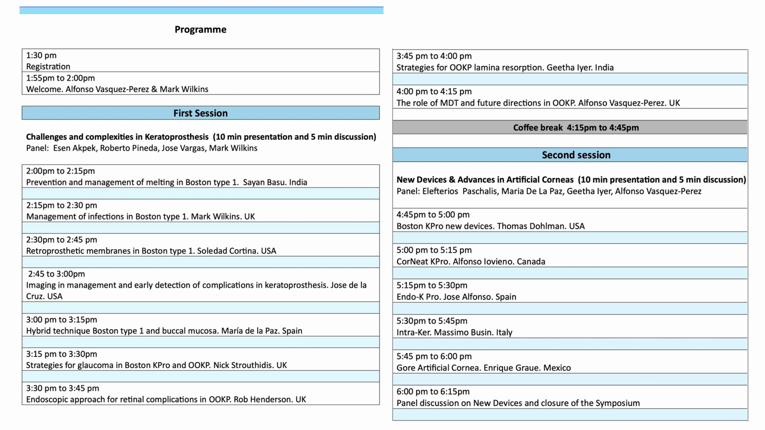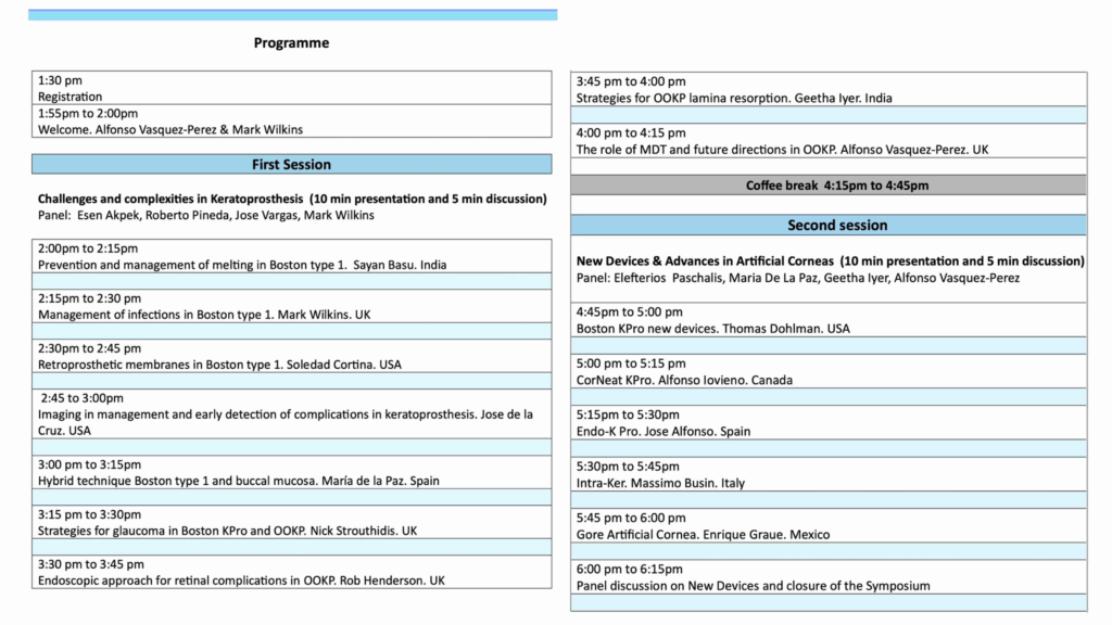 We look forward to welcoming you in London as we advance the science and clinical practice of artificial corneal transplantation.